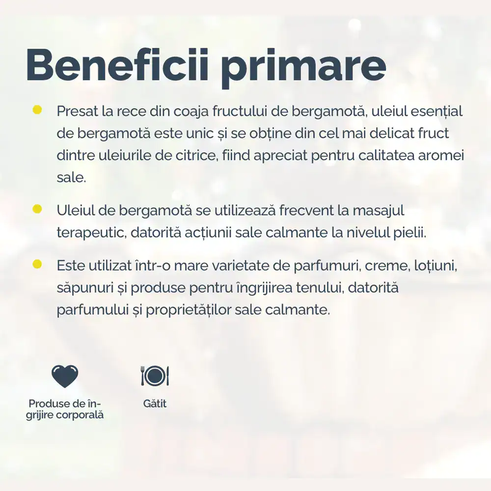 - Citrus bergamia – presat la rece din coaja fructelor italiene