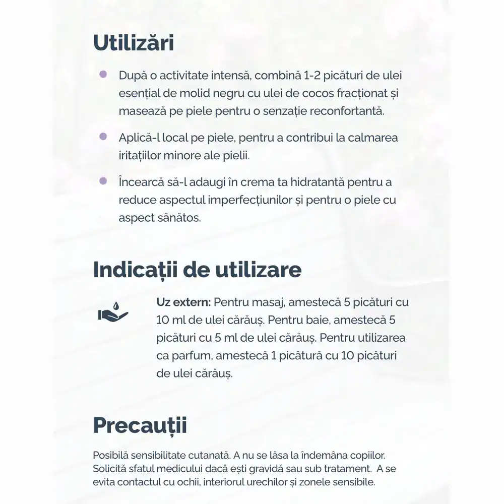 - Pentru pielea ta: Diluează întotdeauna cu ulei purtător înainte de aplicare – 1-2 picături la o linguriță de ulei de cocos este perfect