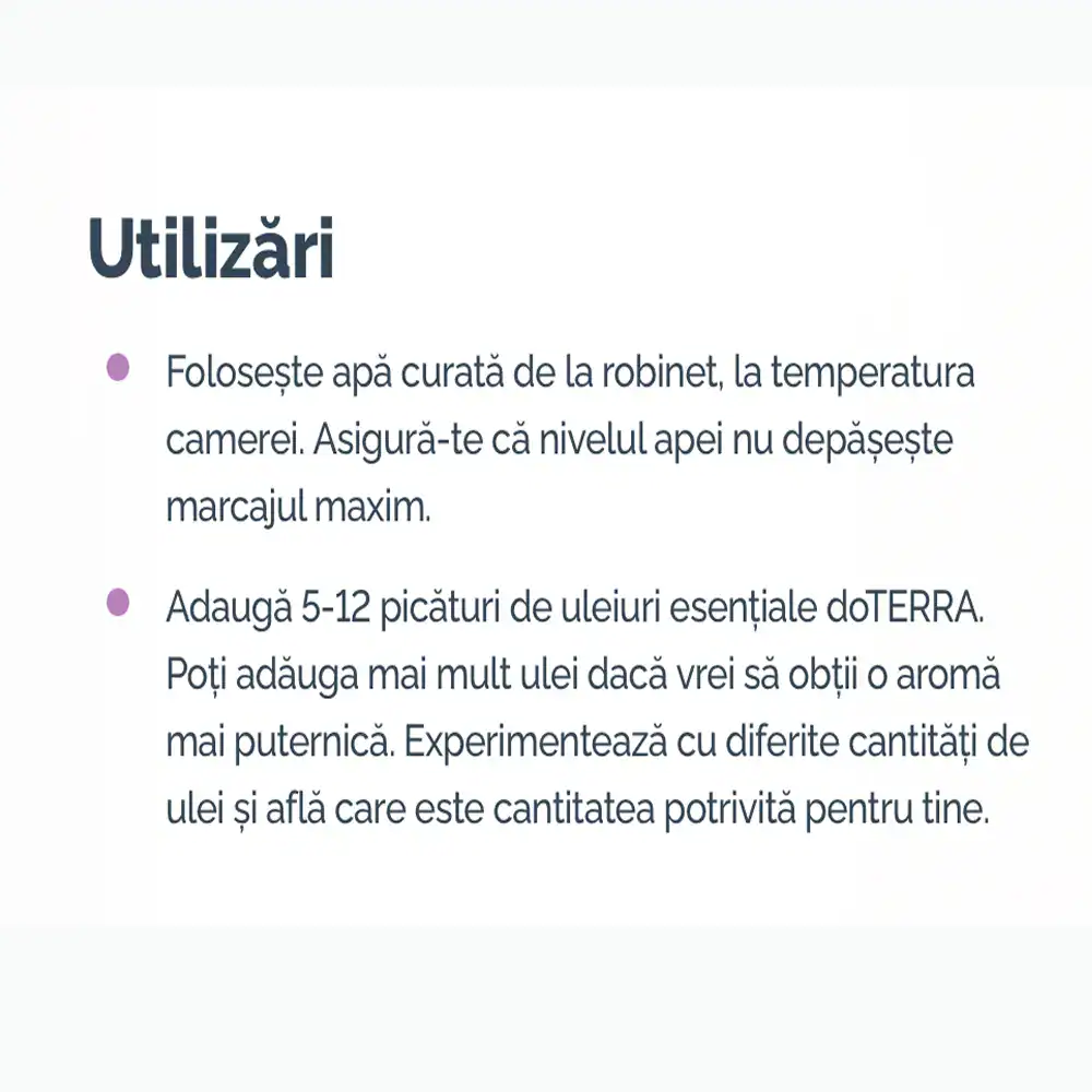 - Garanție producător: Difuzorul vine cu garanție (verifică în pachet), Serenity cu garanție satisfacție dōTERRA