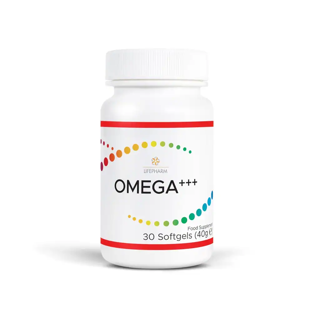 OMEGA+++ este un supliment nutrițional cardiovascular și multifuncțional specializat, lansat de LifePharm Global Network. Este singura formulă brevetată la nivel mondial care combină acizii grași esențiali Omega-3 (EPA și DHA), Omega-9 cu Vitamina K2, Coenzima Q10 Extended Release, ulei de boragină și extract de ou aviar fertilizat (ziua 9 de incubare).
