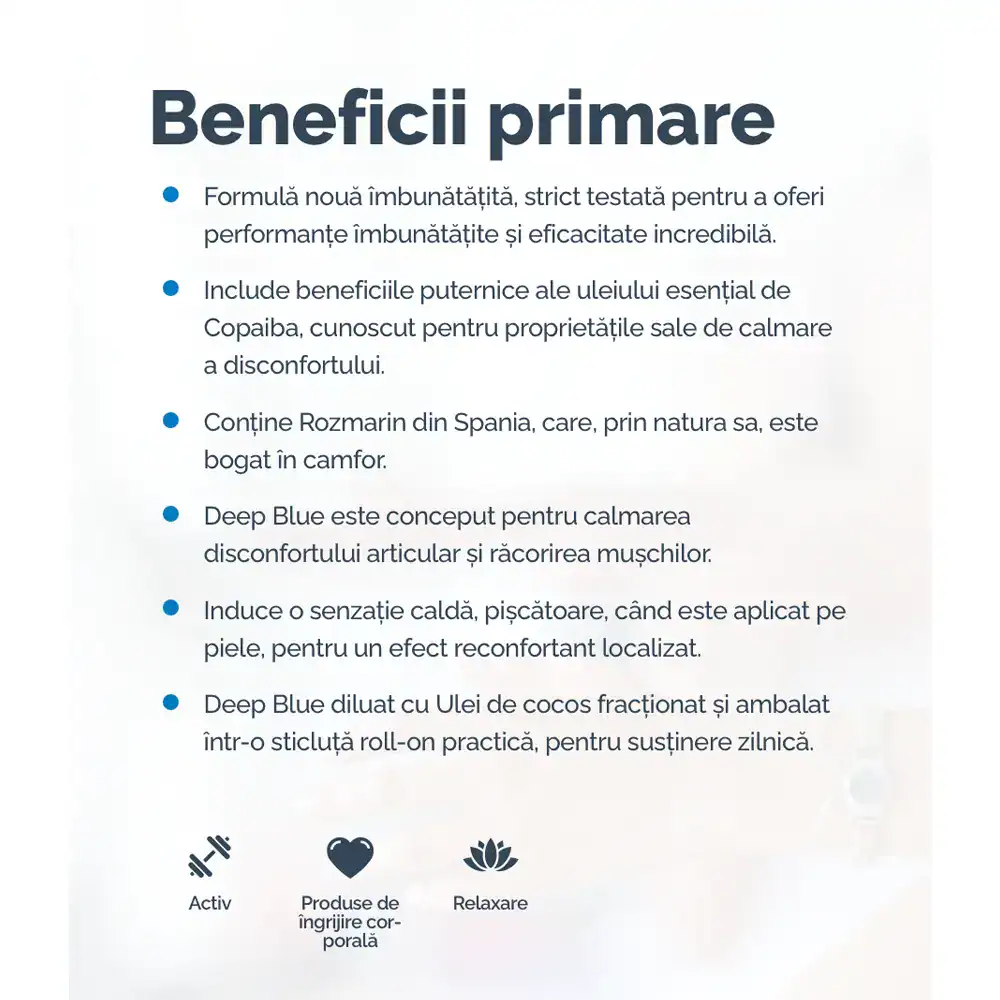 Experimentează acea senzație unică de răcire și căldură simultană care caracterizează Deep Blue, dar într-o intensitate perfectă pentru utilizarea zilnică. Ideal pentru masaj calmant sau pentru momentele când ai nevoie de alinare rapidă și eficientă fără intensitatea versiunii concentrate.