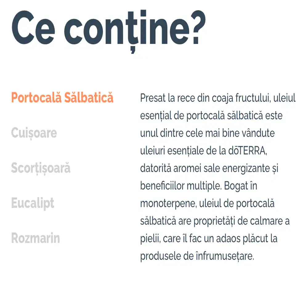 Îmbogățit cu amestecul exclusiv On Guard™ (portocală sălbatică, cuișoare, scorțișoară, cassia, eucalipt, rozmarin și smirnă) – grade CPTG® certificat pur și testat