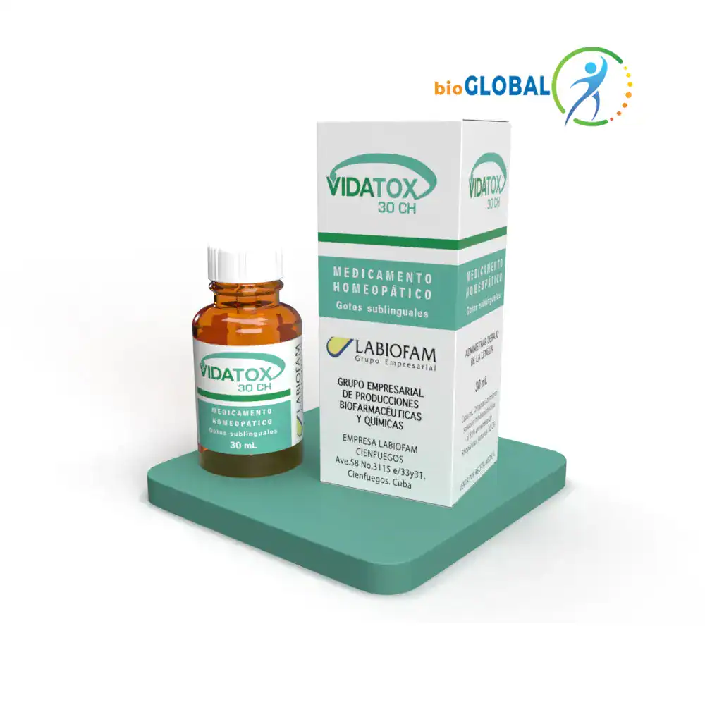 VIDATOX 30CH GREEN este formula originală clasică concepută de echipa de cercetători a Grupo Empresarial LABIOFAM din Havana, Cuba. Produsul a fost testat clinic începând cu anul 1995 și a fost prezentat oficial in octombrie 2010, după 15 ani de cercetări continue asupra proprietăților bioactive ale Scorpionului Albastru Cuban (Rhopalurus junceus).
